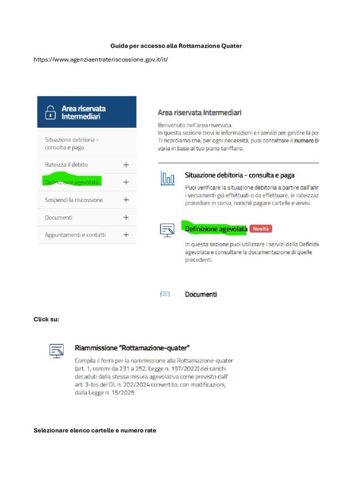 E’ possibile da oggi e fino al 30 aprile 2025 presentare la domanda di Riammissione alla Rottamazione Quater sul sito di Agenzia Riscossione (Sezione “Definizione Agevolata”)